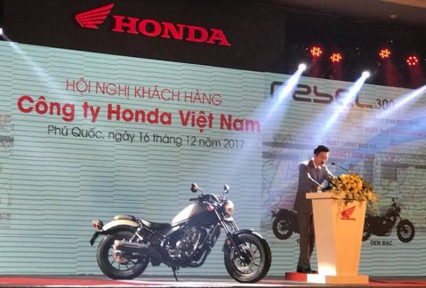 Sáng nay, ngày 16/12, Honda Việt Nam đã bất ngờ công bố chính thức phân phối mẫu cruiser Rebel 300 đầu tiên trong loạt xe phân khối lớn. Tuy nhiên giá bán của xe vẫn chưa được tiết lộ.