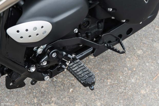 Các trang bị sẵn có đáng chú ý trên xe có thể kể đến như yên xe bọc da Alcantara, phanh đĩa trước/sau có ABS với cùm phanh Nissin, đèn hậu dạng LED, động cơ Bonnevile HT900 dung tích 900cc được che chắn cẩn thận bằng tấm thép bên gưới gầm, hệ thống kiểm soát độ bám đường Traction Control...