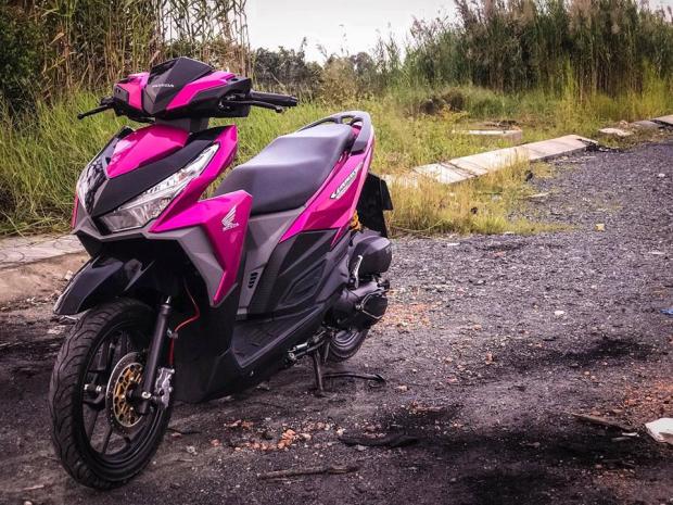 Là mẫu xe tay đang rất được ưa chuộng với các tín đồ chơi xe trong nước bởi mang một thiết kế đầy nam tính , mạnh mẽ & thể thao. Honda Click 125i hiện nay đã có khá nhiều bản độ đến từ tay các dân chơi Việt điển hình như bản độ dưới đây mang một vẻ đẹp thật ấn tượng khi mang ảo ảnh của Vario 150 kết hợp cùng bộ cánh sắc hồng khá đáng yêu.![]()