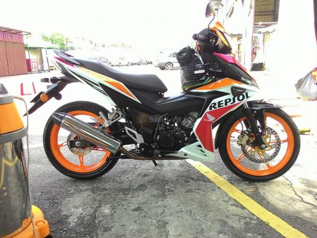 Honda Winner 150 hay còn gọi là Honda RS150R là dòng underbone ở hạng 150cc của Honda. Winner 150 hay RS150R có dàn chân khá chắc chắn, nhất là cặp mâm có thiết kế chữ Y bản lớn chịu lực tốt. Nhưng mới đây có 1 biker đã gắn cặp mâm của Exciter 135.Chiếc Winner 150 gắn cặp mâm của Exciter 135. Mới đây, 1 biker đến từ Malaysia đã độ lên chiếc xe của mình cặp mâm đến từ Exciter 135 với bản lớn: 1.6 trước - 2.5 sau. Như vậy, bản này còn nhỏ hơn cả mâm zin trên chiếc Winner 150. Khi được hỏi thì mới biết, biker Malaysia rất thích tốc độ nên thuờng sẽ hạ bản mâm để hạ size vỏ để có chạy được trên đường cao tốc.