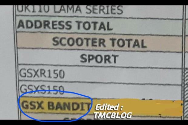 Ban đầu, người dùng chỉ nghĩ đây chỉ là 1 phiên bản Custom của hãng cho dòng GSX-S150 tuy nhiên mới đây tên và mã sản phẩm này cũng đã xuất hiện. Suzuki 23KBO và Suzuki 23K10 là 2 mã sản phẩm liên quan vì theo thông tin được lộ cho biết, 2 mã sản phẩm này sử dụng chung khung sườn với GSX-S150 nghi ngờ chính là dòng GSX Bandit 150.