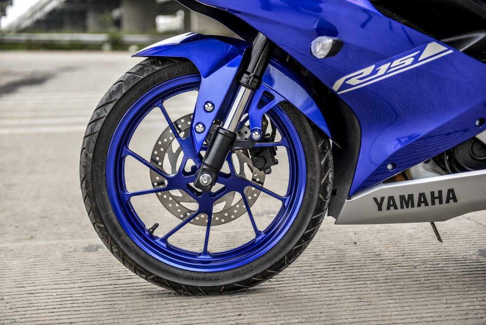 Không chỉ có vẻ ngoài thể thao đầy cuốn hút, Yamaha R15 V3 sở hữu cho mình những trang bị, công nghệ đáng tiền. Dễ nhận thấy nhất là giảm xóc trước hành trình ngược (upside down).