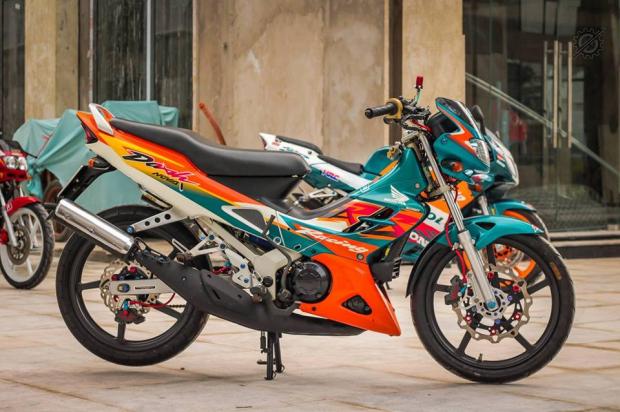 Dù giữ nguyên vẹn ở thiết kế dàn áo nhưng bộ tem đã được làm mới khi chủ xe sơn tem đấu mang phong cách Castrol Racing của đội đua Honda, nó trở nên thể thao & lạ mắt với gam màu xanh lá- trắng & cam, cả 3 sắc màu này được phối hài hòa với