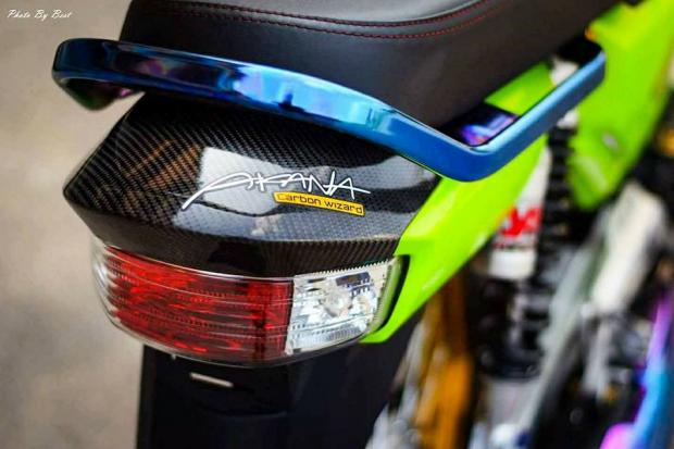 Tay dắt Titan cực đẹp, bên cạnh đó là ốp đèn hậu được phủ lớp Carbon tựa như phía trước.