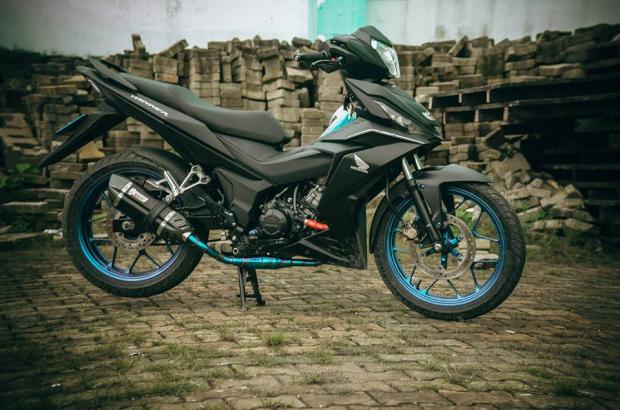 Chiếc xe Honda Winner 150 lần này được độ khá hầm hố và đem lại sự mạnh mẽ và cứng cáp hơn so với nguyên bản. Dàn áo của chiếc xe được khoác lên màu đen nhám dễ nhìn, ngoài ra còn được lên đời thêm một vài đồ chơi.