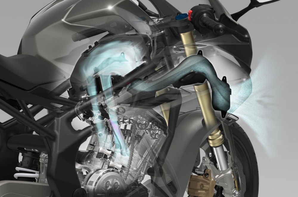 Công nghệ Ram Air đã từng xuất hiện trên CBR250RR ngay từ phiên bản thương mại. Nếu chúng ta 'soi' kỹ, trên R25 phiên bản đường đua có 1 lỗ hốc gió trên mặt nạ, đây chính là công nghệ Ram Air để hút gió vào dễ dàng hơn. Ngoài ra, trên chiếc xe này đã được độ cả 2 két nước nhằm giải nhiệt tốt nhất cho chiếc xe.