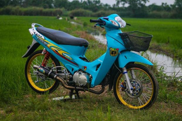 Ở Thailand ta sẽ không còn ngỡ ngàng gì nữa về những sắc màu nổi bật trên các chiếc xe độ & chiếc Wave 125i mà ta thấy trong hình cũng là minh chứng cụ thể với 1 bầu trời xanh lá.