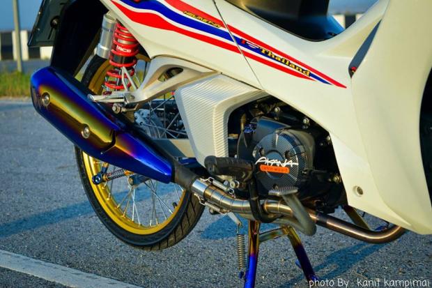 Ống xả thu hút mọi ánh nhìn với ốp pô Titan.Nguồn : http://www.2banh.vn/threads/wave-125i-do-thu-hut-anh-nhin-voi-ve-dep-quyen-ru-cua-biker-nuoc-ban.83805/