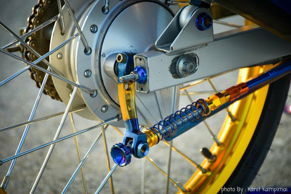Dàn chân mỏng manh nhưng không kém phần cứng cáp với niềng nhôm ánh vàng cực đẹp, hệ thống phanh cũng được thay đổi nhẹ với đĩa moto3 & dây dầu Earl's.