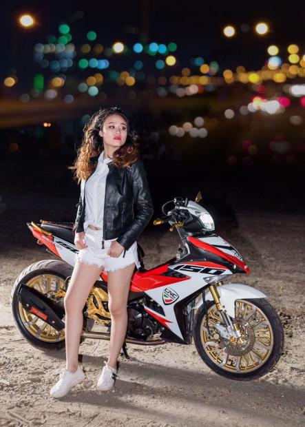 Đã có rất nhiều bộ ảnh Exciter 150 độ đọ dáng cùng hotgirl xinh đẹp & bộ ảnh cực chất dưới đây cũng không ngoại lệ với 'cô nàng ngây thơ' xinh ngất ngây này.Bóng hồng Bình Định ngây thơ bên chiếc Exciter 150 độ hầm hố. Là dòng xe côn tay đậm chất thể thao của nhà sản xuất Yamaha, dòng xe này thể hiện sự mạnh mẽ, không chỉ có cánh mày râu mới yêu thích mà Exciter 150 còn tạo được sức hút đầy quyến rũ cho chị em phụ nữ. Tương tự như vậy, bộ ảnh cực đẹp dưới đây của 'cô nàng ngây thơ' đọ dáng cùng Exciter 150 độ cực chất.