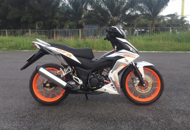 Xem qua tổng thể thì con chiến mã này trở nên rực rỡ với 2 tone màu 'trắng cam' là chủ đạo chính , dàn áo mang phong cách Indo .