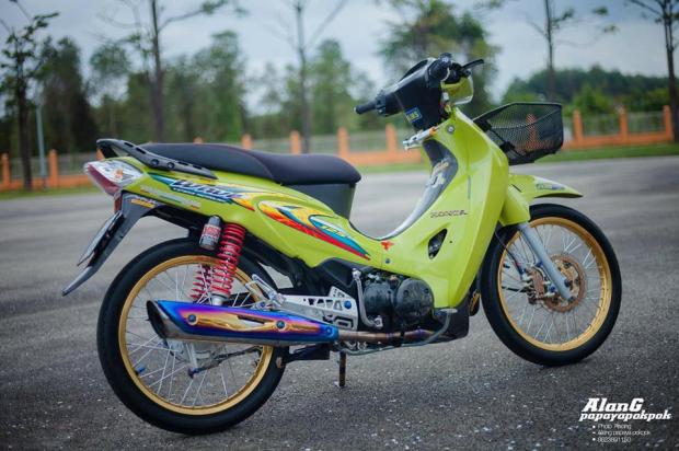 Ở Thailand ta sẽ không còn ngỡ ngàng gì nữa về những sắc màu nổi bật trên các chiếc xe độ & chiếc Wave 125i mà ta thấy trong hình cũng là minh chứng cụ thể với 1 bầu trời xanh lá.