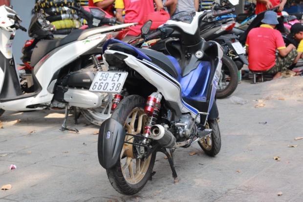 Tuổi đời của dòng xe này khá cao nên các chi tiết dàn chân lốc máy và dàn áo đã được phục dựng lại hoàn toàn - Bên cạnh còn có cặp cùm NVX có thể ráp vừa với dòng xe Yamaha hiện nay như các đời Exciter 135, Luvias, Jupiter... phần cứng thì không