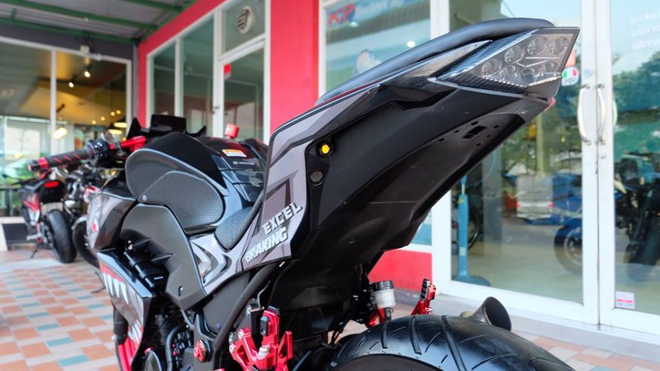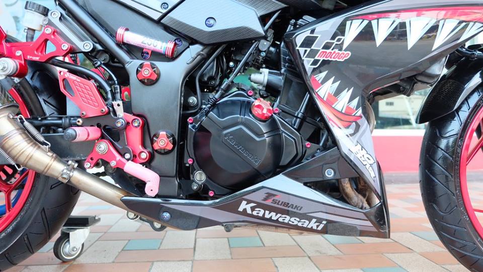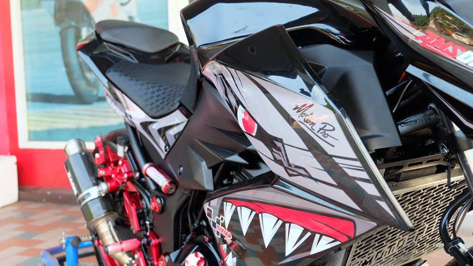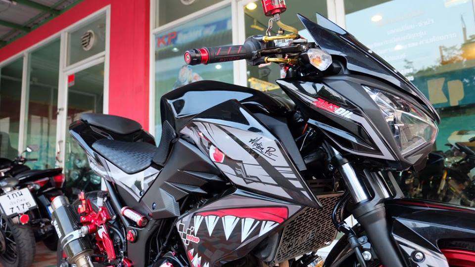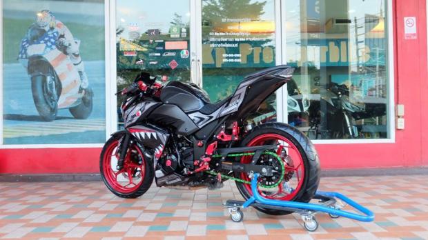 Kawasaki Z300 được thiết kế xe mang ngôn ngữ Sugomi, thừa hưởng nhiều điểm chung với 'đàn anh' Z800 đã bị khai tử vào năm 2016. qua tay các Biker Thái, mẫu nakedbike tầm thấp này trở nên hầm hố hơn từ ý tưởng thiết kế tem cực ngầu qua dàn áo đấu Cá mập Shark.