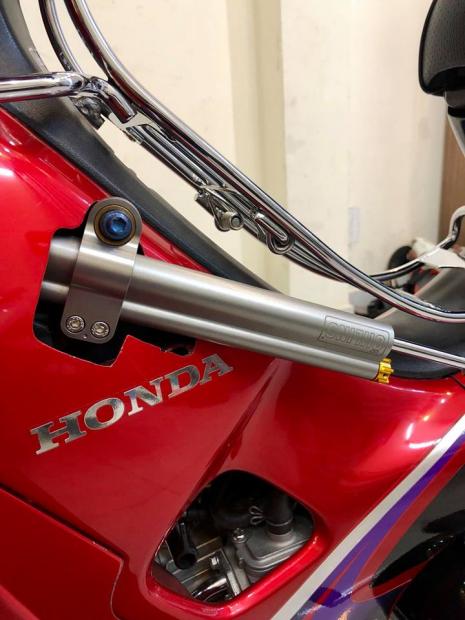 Trợ lực Ohlins kẹp sườn với tổng hành trình 140mm ngoài khả năng giúp ổn định tay lái ở tốc độ cao, ngoài ra các dòng trợ lực đang dần trở thành món đồ chơi trưng bày trên các chiếc xe dọn kiểng