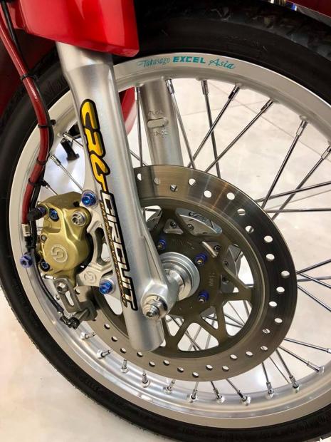 Combo dàn chân trước làm nhiều fan Wave Dream mơ ước với dây dầu Galfer đi cùng heo dầu Brembo logo lớn 2 pis đối xứng + pát heo CNC vào đĩa LS