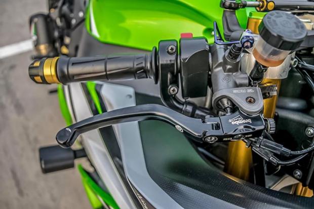 Ở phía trên tay lái, chủ xe đã trang bị hệ thống phanh Brembo RCS và gù CNC.