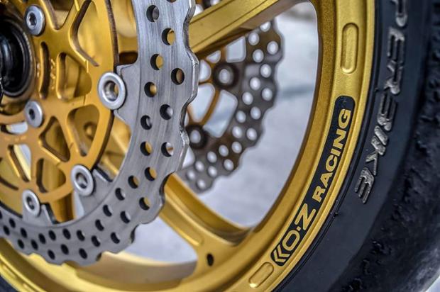 Điểm nhấn cho bản độ đến từ bộ mâm O.Z Racing hàng hiệu, với trọng lượng nhẹ và thiết kế thể thao thì đây là món đồ chơi mà nhiều Biker thèm muốn, giá trị của nó được biết là đẳng cấp hơn Marchesini.