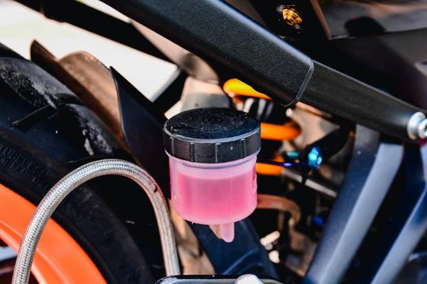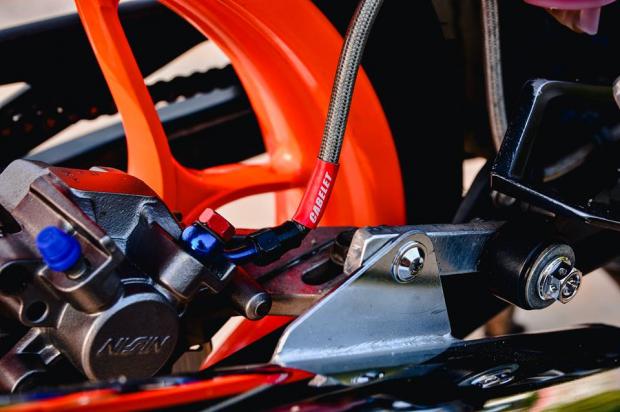 Hệ thống phanh sau được thay đổi với dây dầu Galfer .