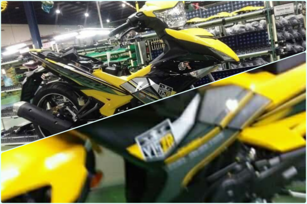 Hình ảnh chiếc Exciter 150 màu Vàng/ Đen đang được láp rắp.