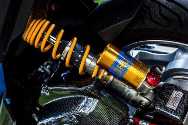 Phuộc Ohlins bình dầu cho độ nhún êm ái hơn cũng như tăng độ đẳng cấp & sang trọng cho xe với dòng thương hiệu tên tuổi này.