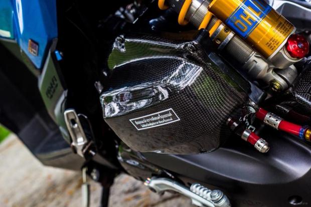 Xem qua tổng thể em nó được khoác cho mình bộ áo xanh nước biển tạo cảm giác mát mắt cho người xem, bên cạnh đó là những món đồ chơi tên tuổi được gắn trên xe như : heo Brembo billet, phuộc Ohlins bình dầu....