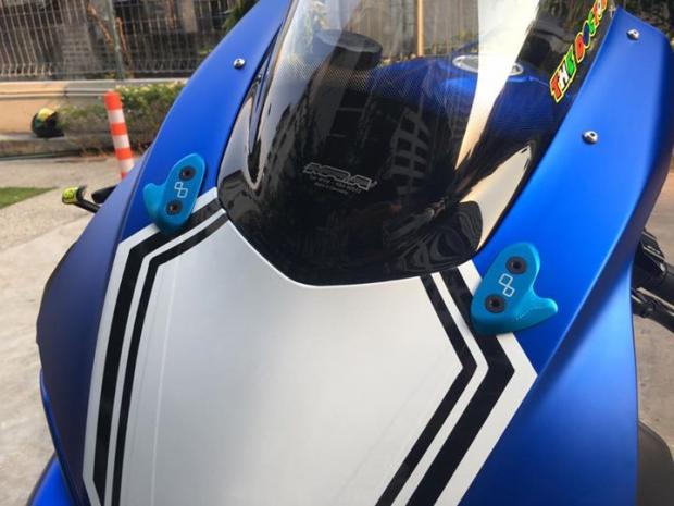 Giúp đầu xe trở nên gọn hơn với bộ pát chân kính Lightech, kính chắn gió MRA xám khói thay thế cho trang bị tiêu chuẩn.