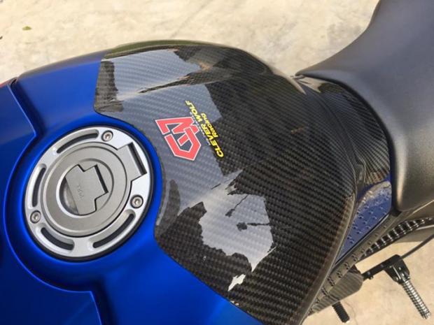 Ngay vị trí cạnh yên xe là bộ ốp bình xăng Clever Wolf Racing.