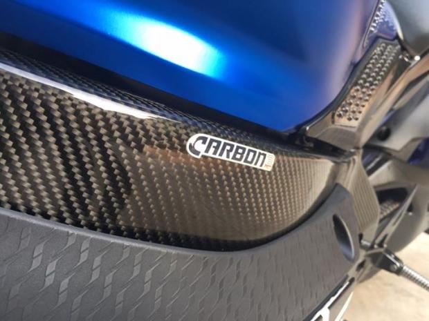 Hông xe được phủ Carbon fiber bắt mắt khiến thân xe chau chuốt hơn qua từng góc nhìn.