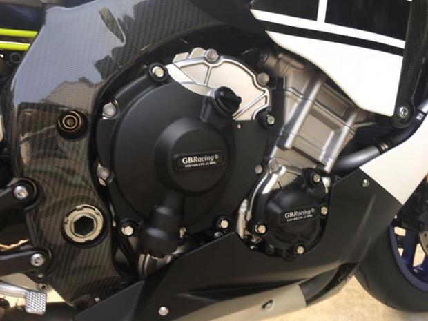 Cạnh khối động cơ là bộ ốp GB Racing vừa trang trí vừa có chức năng bảo vệ tránh trầy xước.
