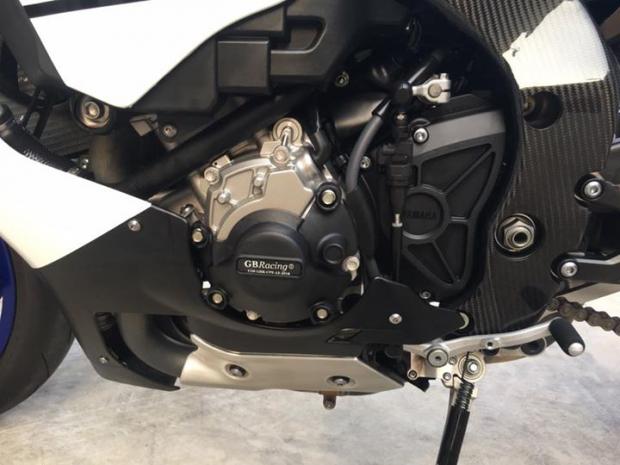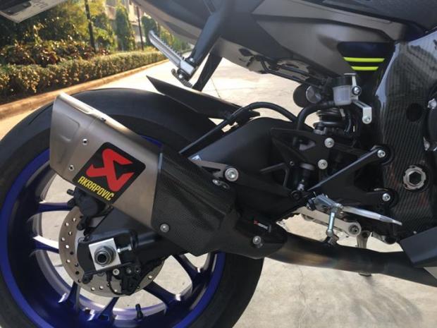 Bộ ống xả độ hiệu Akrapovic dành riêng cho R1 có kiểu dáng hình oval với miệng ống pô vát chéo, phát ra âm thanh trầm ấm đặc trưng.