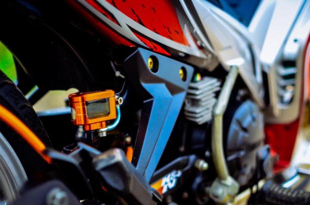 Hình ảnh cục máy cho ta thấy bé Exciter này là dòng 5 số được xuống áo 4 số đây đang là một phong cách chơi khá hot đối với các Biker đã nhàm chán dàn áo nguyên bản, cục sạc của xe được đua ra ngoài mô phỏng theo cách Spark Fi của Thái Lan, bình dầu Rizoma trong suốt cho ta thấy được lượng dầu bên trong