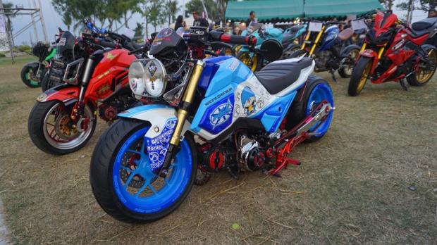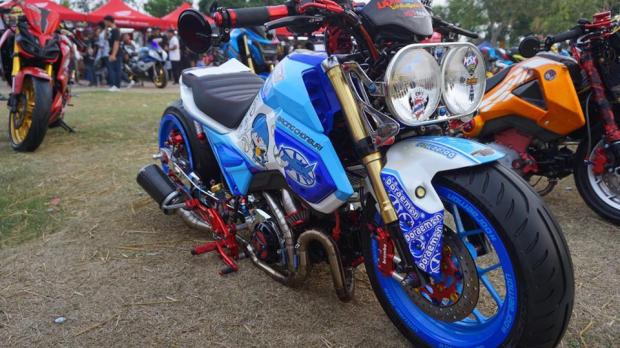 Chiếc MSX 125 độ này được khoe sắc trong 1 buổi offline quy tụ dàn xe độ của các biker tại xứ sở chùa vàng , em nó trở nên ấn tượng với dàn chân hầm hố kết hợp cùng bộ cánh Doremon cực đáng yêu .