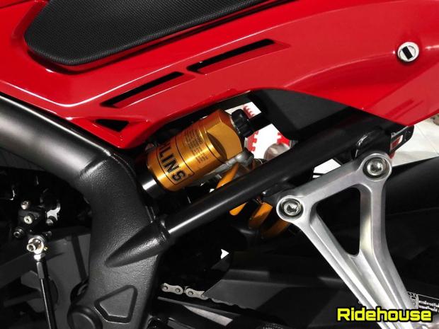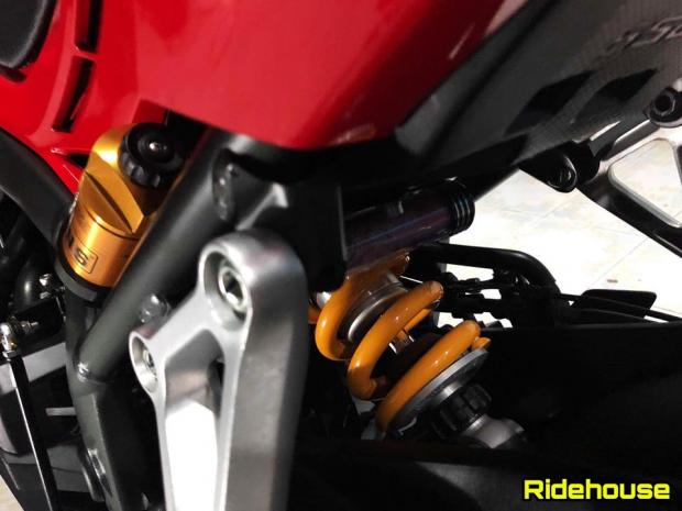 Ngoài ra hệ thống treo sau cũng được nâng cấp với phuộc monoshock Ohlins bình dầu rời với chức năng điều chỉnh tải trước hiện đại.