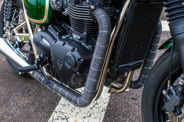 Thay đổi không đồng nhất được xem là rất khó khăn, nên hãng xe Triumph đã tư vấn và thay thế bơm nhiên liệu mới để phù hợp với bộ áo này. Hoàn thiện với thay đổi tay lái clip-on và bộ gương gù cá tính.