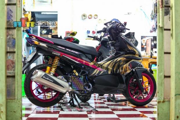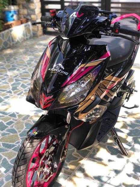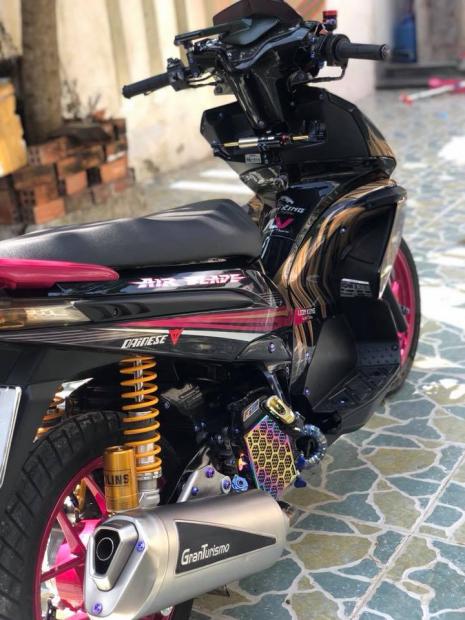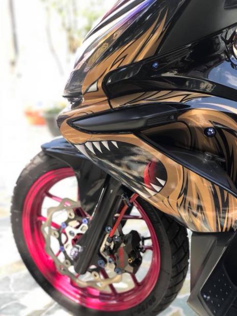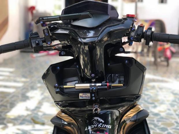 Khoác cho một dàn áo full Blak bên cạnh đó chủ xe còn thiết kế cho chiến mã mình một bộ tem hình chú sư tử đang lao về phía trước nhìn khá thể thao, thêm vào đó là chắn gió NVX tăng cho xe thêm sự mới lạ