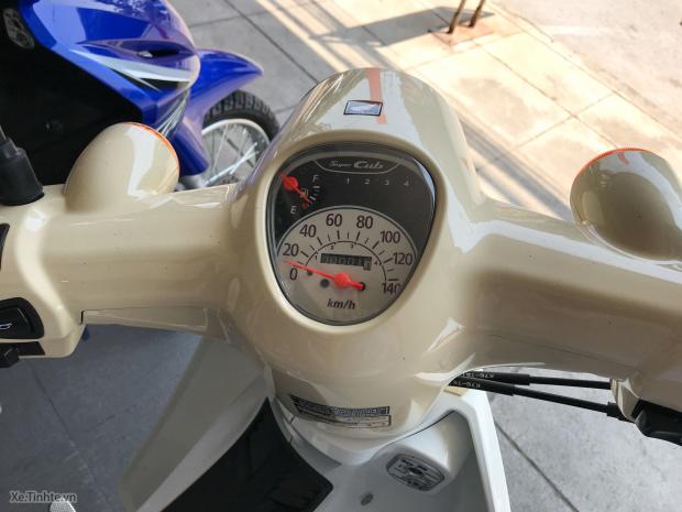 Bảng đồng hồ tốc độ Super Cub 110 2018 có thiết kế đơn giản. Bên cạnh thông tin tốc độ và ODO, thì bảng đồng hồ này cũng thông báo lượng xăng trong bình và vị trí số.