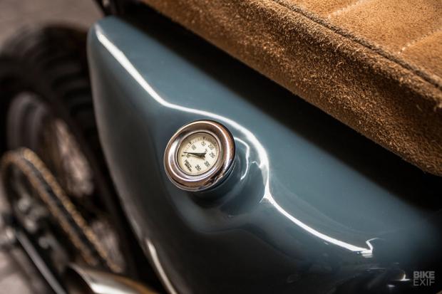 Bên dưới yên xe là đồng hồ đo tốc độ được lấy từ Triumph Legend TT.