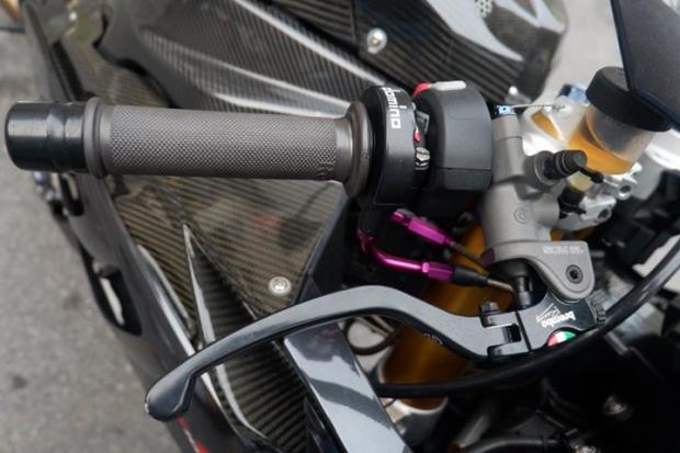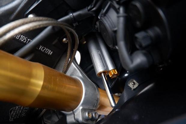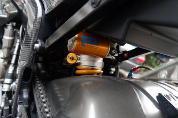 Ngoài ra chủ xe còn khéo léo bố trí bộ trợ lực Ohlins ngay dưới trung tâm tay lái đem lại sử ổn định ở tốc độ cao, một option không thể thiếu cho những tay nài yêu thích tốc độ.