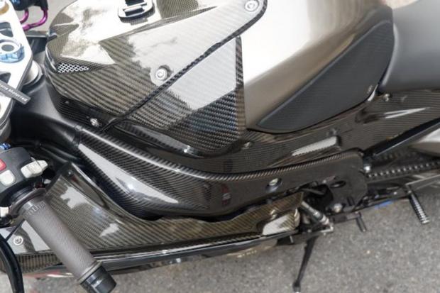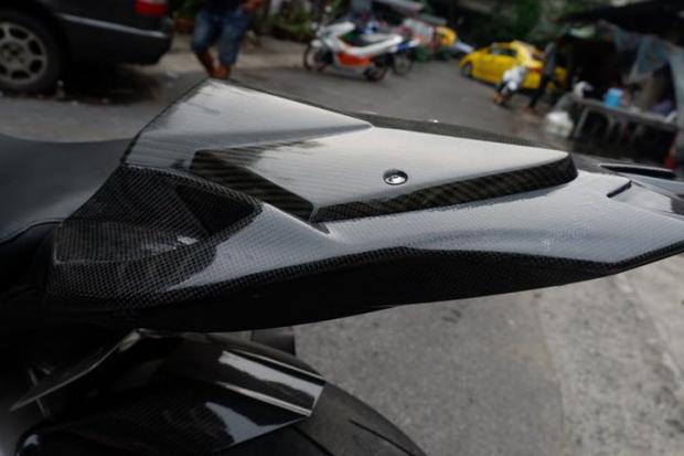 Hiệu ứng carbon fiber bao phủ toàn thân xe ở nhiều chi tiết như ốp khung, bình xăng, chắn bùn,... đem lại cảm giác nhẹ nhàng và độ thẩm mỹ thì không thể chối từ với thương hiệu fullsix Carbon.