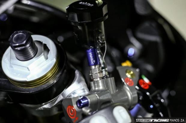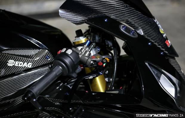Bên cạnh bộ cánh đèn tuyền đầy bí ẩn mà chủ xe lựa chọn riêng cho bản độ của mình, các phụ kiện đồ chơi hiện hình trên thân xe cần nhắc đến như bộ kính chắn gió Magical Racing cải thiện hiệu suất khí động học, cùm phanh Brembo Rossi cải thiện lực thắng nhờ vào piston lớn.