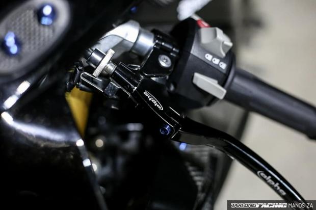 Tương tự với vị trí ngắt côn tay trái là cùm côn alpha Racing chống gãy.