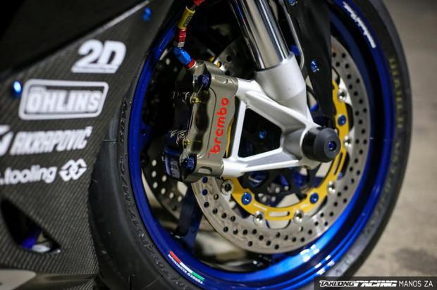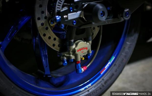 Dàn chân đầy sắc màu vừa đem lại sự nổi bật cho bản độ dưới bộ cánh full black là bộ mâm Marchesini Forged, bộ phanh Brembo Billet 4pis cho lực phanh ổn định hơn và bộ đĩa Brembo cho độ tản nhiệt tốt hơn.