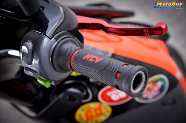 Bao nay NCY với thiết kế khá đẹp, không chỉ tạo điểm nhấn ở phía tay lái mà còn mang lại sự êm ái hơn cho người lái, bên cạnh đó là tay thắng CNC màu đỏ.