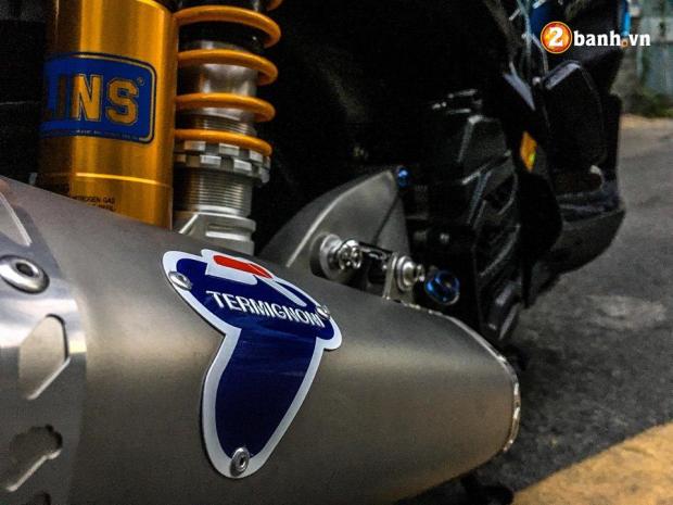 Lốc máy tạo điểm nhấn với đội hình ốc Proti cực sang trọng, phía trên là ốp lọc gió Carbon. Điểm nhấn chính gây nổi bật của bức ảnh này đó chính là phuộc Ohlins bình dầu, 1 dòng phuộc đẳng cấp với giá trị cực cao & nó là ao ước của nhiều biker bởi khi gắn lên xe sẽ cho độ nhún siêu êm cũng như độ sang trọng cho xe.