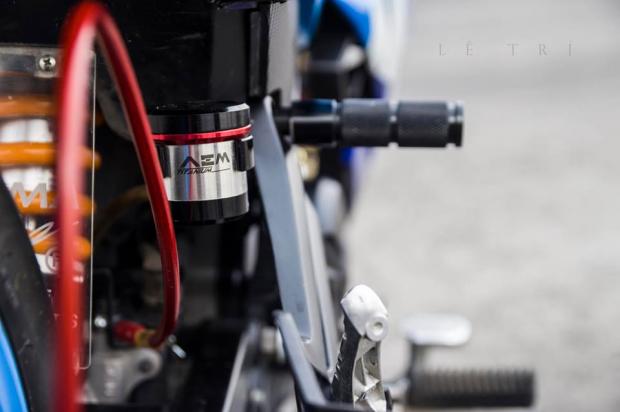 Phuộc kiểu bình dầu rời được mod lại theo phong cách Ohlins, cacte CNC phay kiểu dáng gần giống với sản phẩm của Racingboy