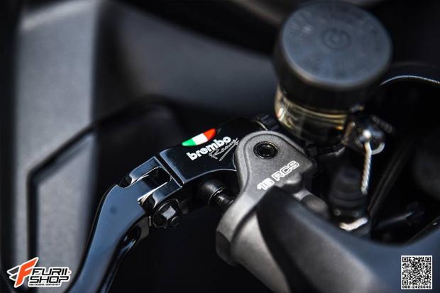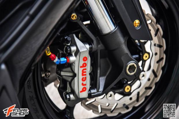 Dàn chân được sửa đổi với cặp phanh Brembo M4 thừa kế từ những anh đại PKL đem lại hiệu suất phanh được tốt hơn, kết hợp cặp đĩa Galfer với thiết kế sắc cạnh cho lỗ thoát bố thắng được dễ dàng hơn và tản nhiệt tốt hơn.