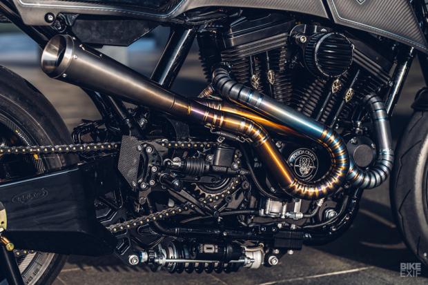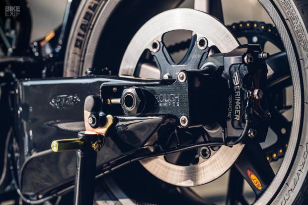 Ở phía trước, Winston đã thiết kế lại bộ chảng ba và trang bị cặp Ohlins FGRT206, ban đầu được sản xuất cho Yamaha R1.