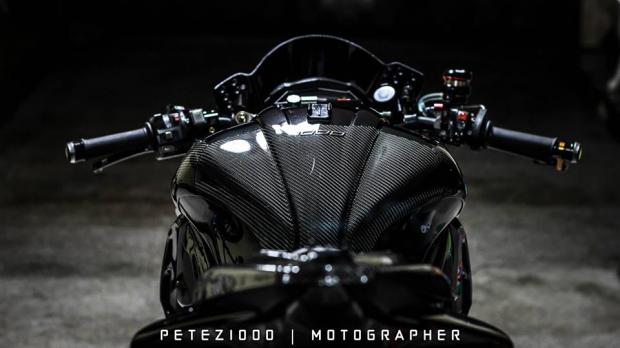 Bao phủ màu đen huyền bí là nhiều chi tiết như bình xăng được ốp Carbon fiber khá hoàn hảo.