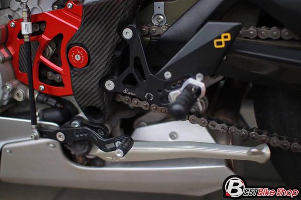 Chi tiết bộ số gãy Lightech, ốp khung xe CarbonWorld và ống xả SC Project, lấy cảm hứng từ bộ dụng cụ dùng cho xe đua MV.